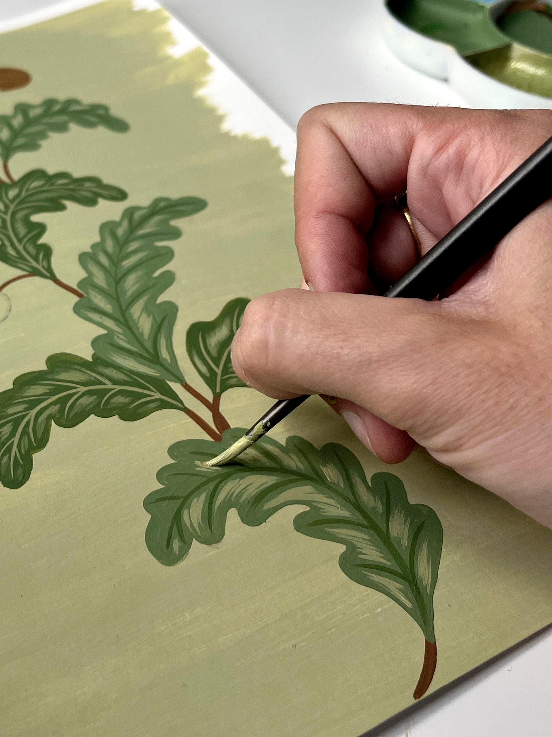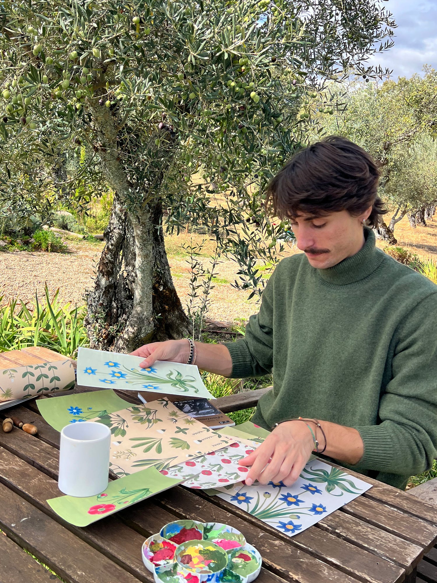 Mi inspiración viaja por épocas y lugares: desde las ilustraciones medievales de los manuscritos iluminados al Arts & Crafts de Morris y Voysey; del Nueva York de los 70 a la Movida madrileña; del mid-century modern de Palm Springs a la calidez de los cottages ingleses. Todos mis diseños nacen del lápiz o del pincel. Prefiero los métodos manuales, dejando lo digital en segundo plano. Me gusta recuperar técnicas artesanales y dar valor al tiempo, atención y mimo que requiere cada creación.