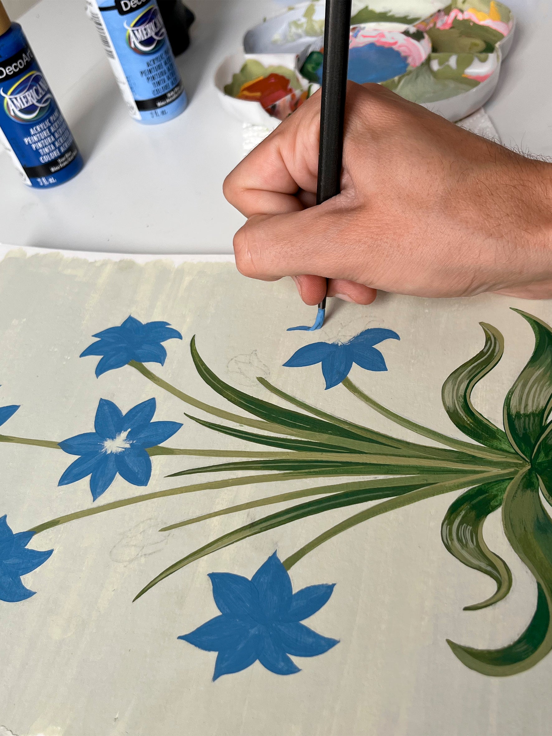 En el trazo y en el error encuentro carácter, belleza y autenticidad. Siempre trabajo acompañado por música country, que es la banda sonora de mi vida. Hoy combino ilustración e interiorismo para crear papeles pintados que aporten calidez, originalidad y calma a los espacios.