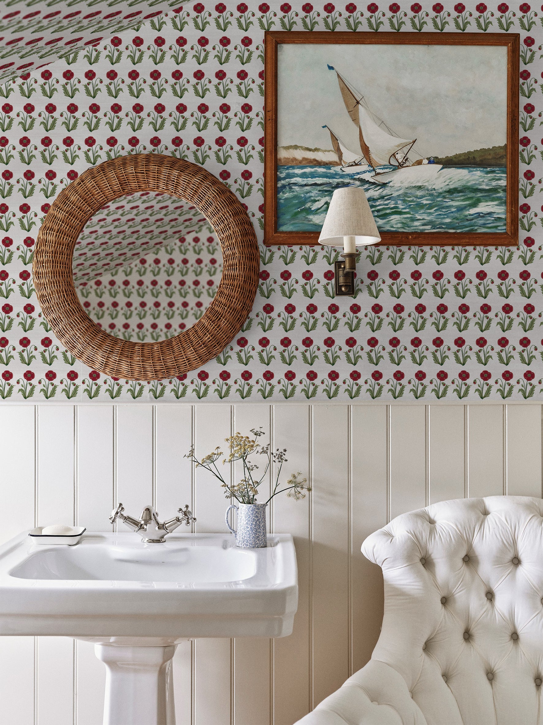 Un campo rojo que se repite sin fin, lleno de amapolas que evocan la calma del campo y la belleza de lo efímero. Un estampado alegre y delicado que llena de color cualquier espacio.